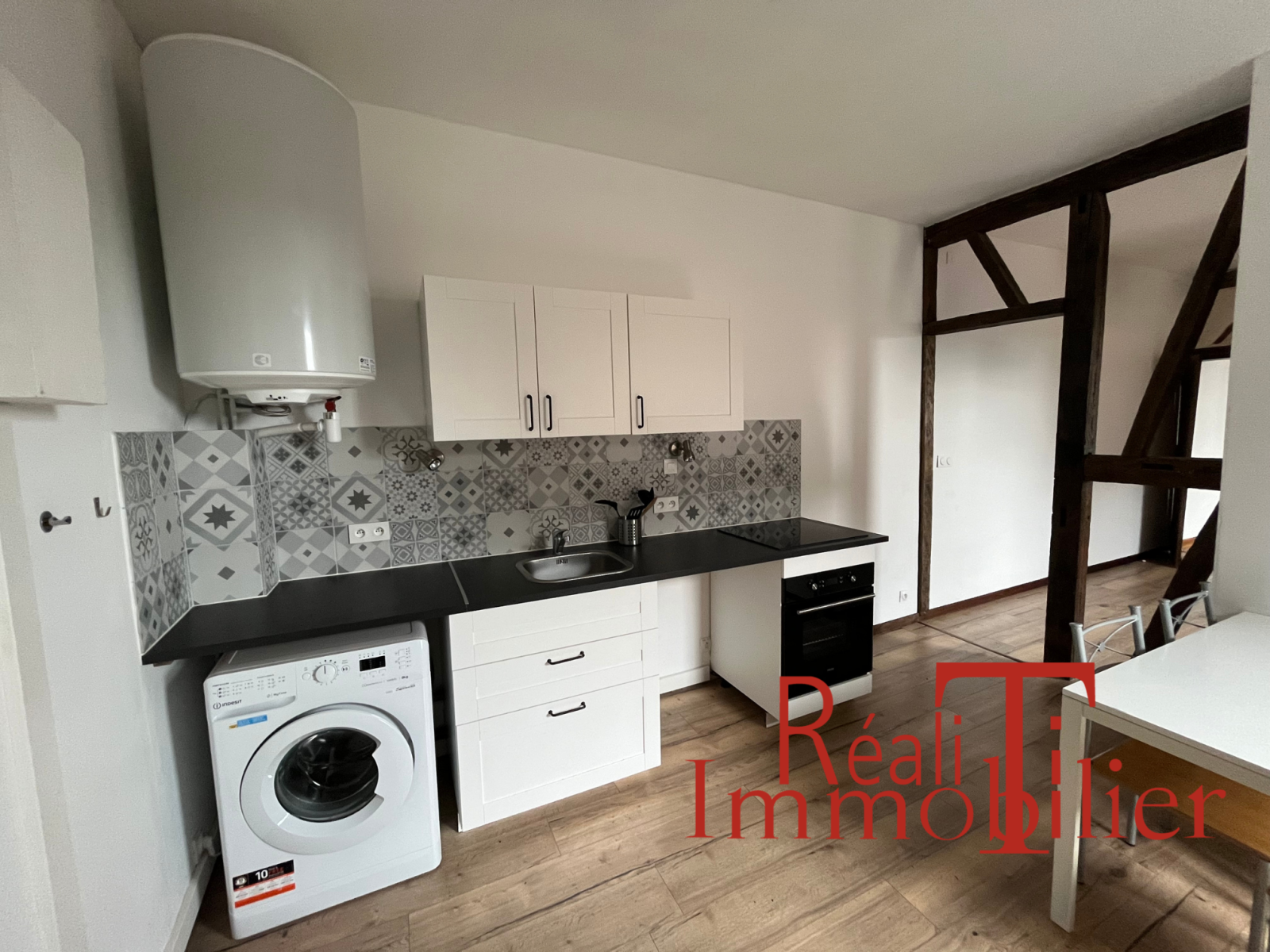 Au 2ème étage Appartement T1 bis : Pièce de vie/cuisine, une chambre, salle de bains avec wc.