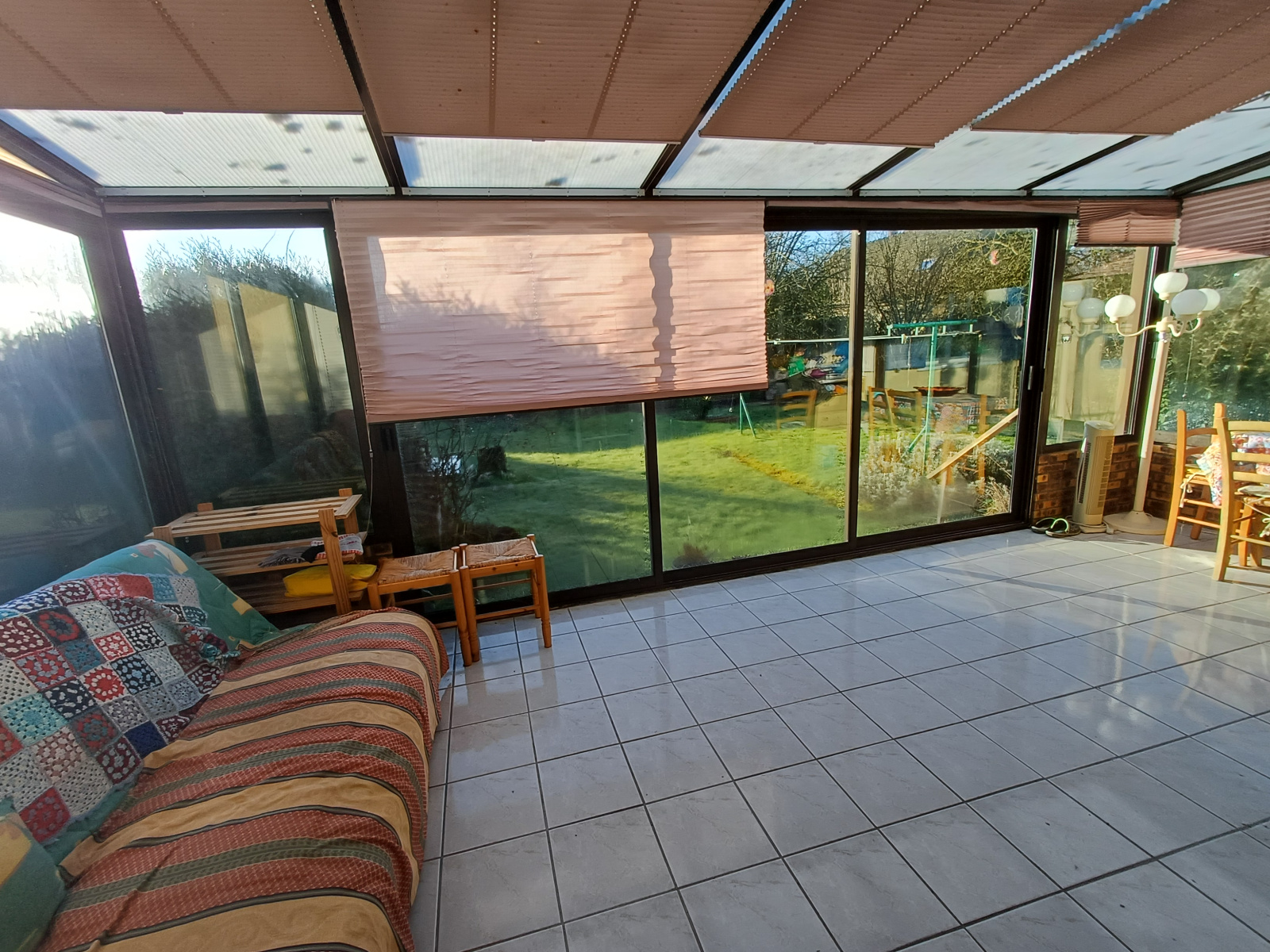 Une véranda, un garage, un bâtiment, le tout sur un terrain clos et arboré de 1126 m² au calme.