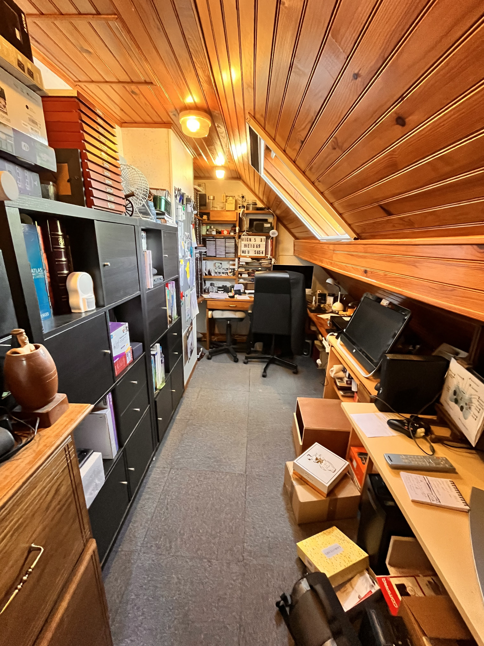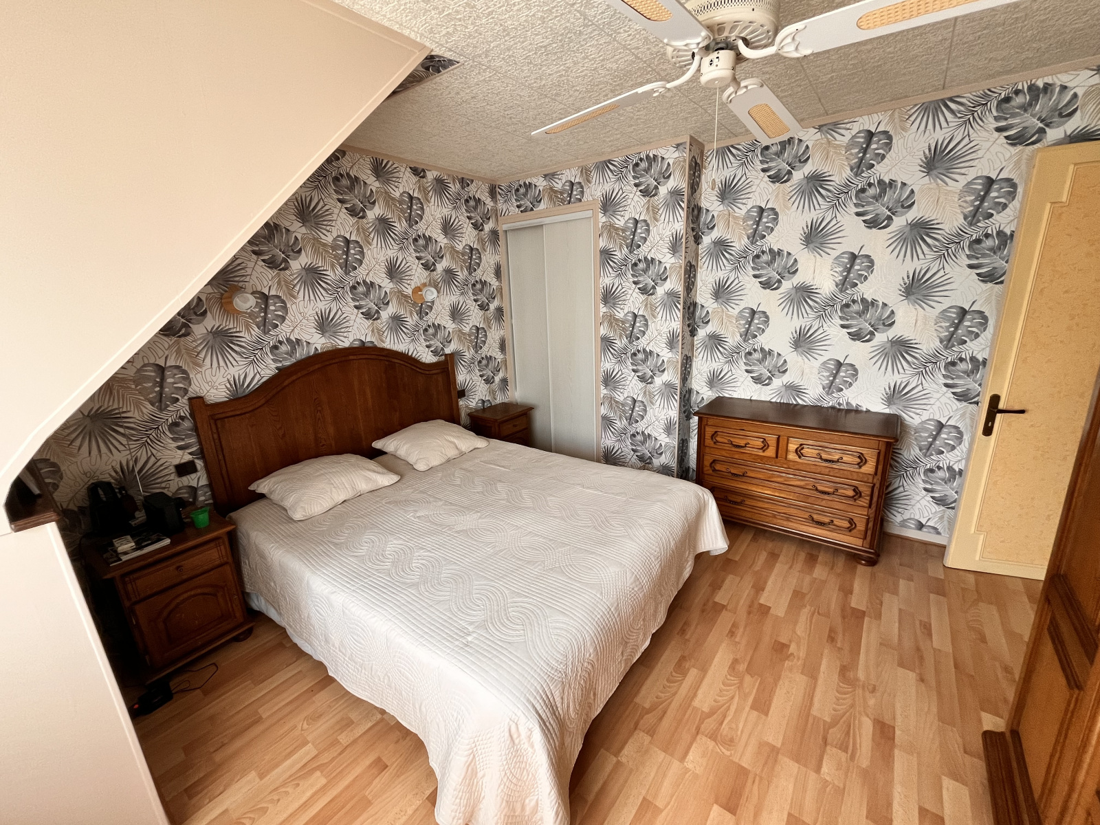 - Au 1er Etage : Palier desservant 2 chambres avec placard, bureau et wc.