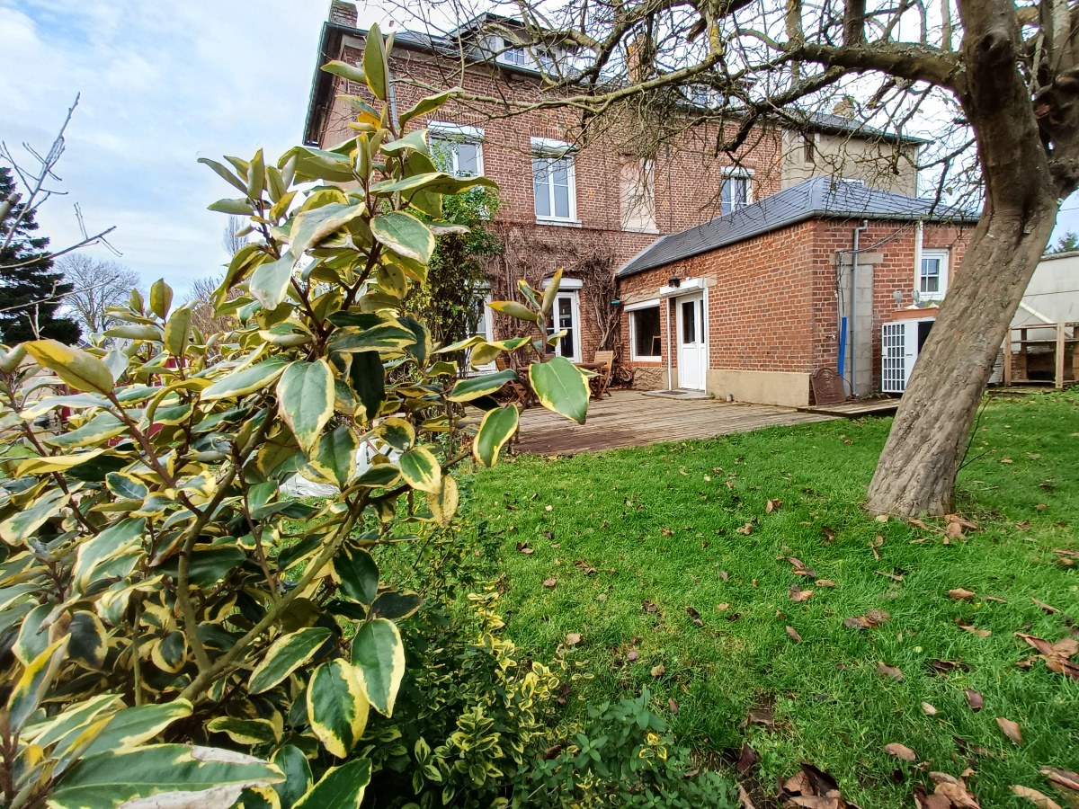 Maison de Maître mitoyenne d'un coté comprenant une entrée, un séjour, une cuisine aménagée et équipée, un salon pouvant servir de bureau, une salle de bains avec wc. Au premier, un palier desservant 2 chambres dont à renover. Au second, un palier desservant une chambre avec un bureau et ou dressing, et une autre chambre. Une dépandance d'environ 17 m² pouvant servir de loft, comprenant une entrée, un wc, une pièce de vie, et une salle d'eau. Deux cabanons, une terrasse, le tout sur un terrain clos et arboré de 1125m². Chauffage électrique par pompe à chaleur, fenêtres pvc doubles vitrages, volets roulants manuels, tout à l'égout.